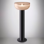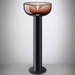 AELLA TR 45 floor lamp represents the latest incarnation of the iconic AELLA collection, born from the creative minds of designers Renato Toso and Noti Massari in 1968. With a longer matte black extruded aluminum body compared to the table version (Ø32 cm – H 94.7 cm), this lamp stands out for its imposing presence, providing an even more majestic and stable presence. The blown glass diffuser (Ø45), available in three colors – Shaded burgundy, Smoke grey, or Transparent with a white spot – harmoniously integrates with the matte black base, offering a unique and personalized aesthetic for any environment. Upon request, versions in Pulegoso with metal inclusion, Shaded white, White shaded pink, and Alabaster with brush strikes are also available. Just like the original, this reissue is destined to become an icon of timeless style and beauty, combining solidity and lightness in any space.