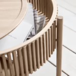 Story is an elegant series of handmade side, coffee and bar tables. Each design features the distinctively airy front formed by the elegant wooden columns. Transparent enough to show off your favourite items or just covered enough to conceal them behind the playful front. The designers behind it, Anna Karnov & Clara Mahler, wanted to create a long-lasting design that meets changing needs and wishes. Emphasised by quality craftsmanship and the natural oak that changes character over the years and makes each table unique with its own original and beautiful story. The tables are made of FSC™-certified wood and each table is assembled with six bolts that are creatively hidden from the naked eye.