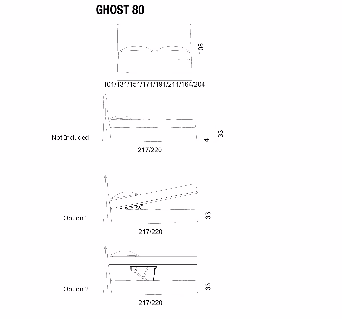 90×200, 120×200, 140×200, 160×200, 180×200, 200×200, 153×203, 193×203