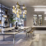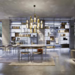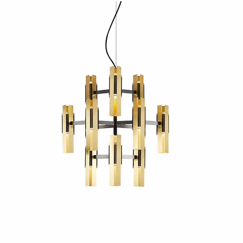 A lamp with subtle Deco inspiration, featuring a black-coated body and two plexiglass prisms that diffuse the light, wrapped in three brushed metal foils. In addition to the classic brushed brass finish, the collection is now also available in satin bronze and satin titanium, offering new interpretations of its elegant geometry. Excalibur comes in multiple configurations: single or clustered suspensions, two sizes of chandelier, and wall versions in single or double format.