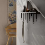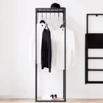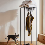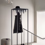 A graphically precise framing device for featuring rather than hiding clothes away, the floor version with a soft coir mat at the bottom for the shoes! Meanwhile, the wall hanger is a perfect fit in any hallway, with the added benefit of the sill to hold phones, keys or even artwork.
