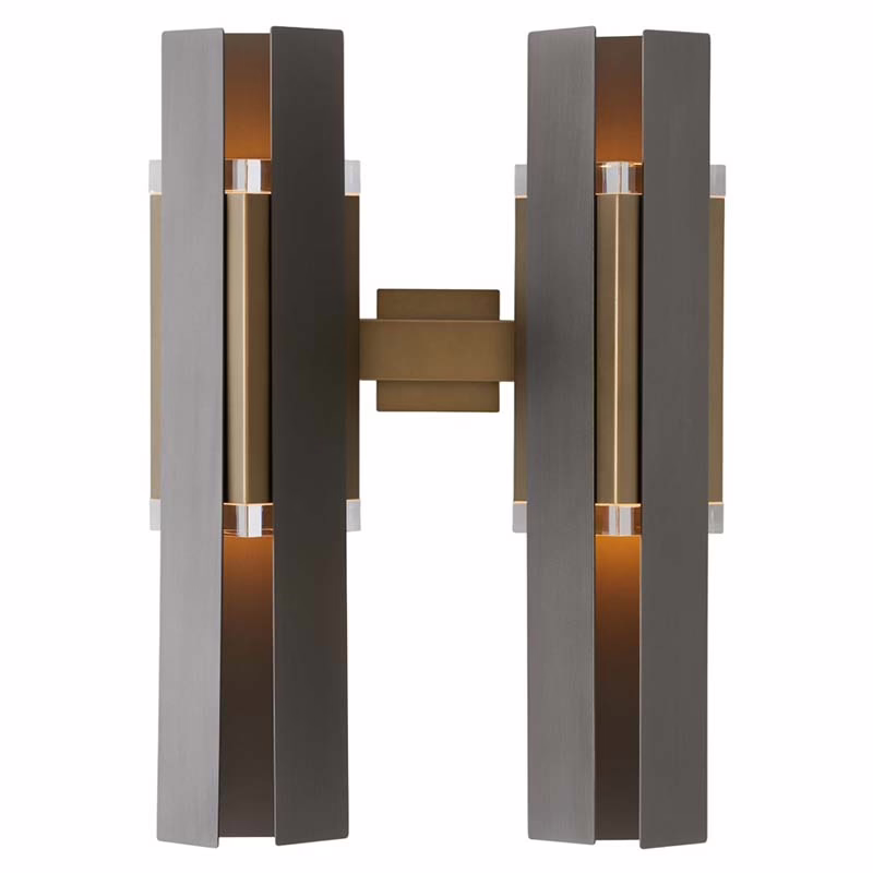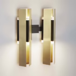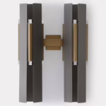 A lamp with subtle Deco inspiration, featuring a black-coated body and two plexiglass prisms that diffuse the light, wrapped in three brushed metal foils. In addition to the classic brushed brass finish, the collection is now also available in satin bronze and satin titanium, offering new interpretations of its elegant geometry. Excalibur comes in multiple configurations: single or clustered suspensions, two sizes of chandelier, and wall versions in single or double format.