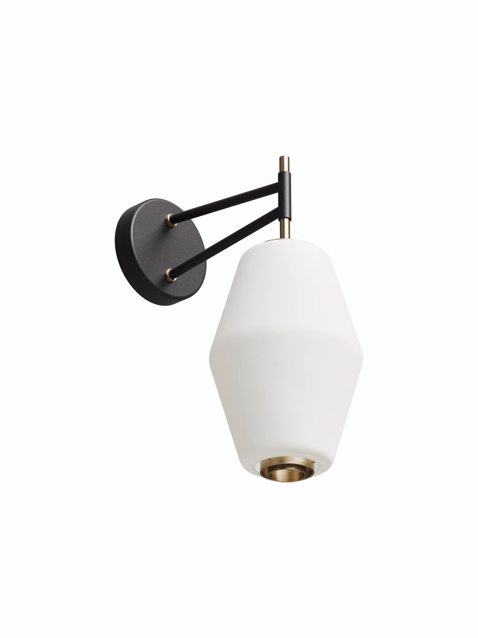 With its opal mouth-blown glass shade and subtle brass detailing, the wall lamp spreads a soft, even light that creates a warm and welcoming atmosphere. Minimalist yet distinctive, it works beautifully on its own, in pairs, or arranged in series. Available in black with brass details, the lamp lamp blends seamlessly into both classic and modern interiors.