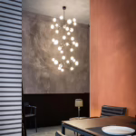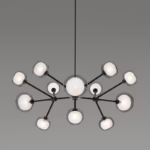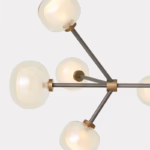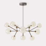 50s-inspired collection of elegant and sophisticated lamps, designed as distinctive details to enrich any interior. A double-sided luminous sphere in borosilicate glass defines the character of the collection, available in multiple compositions. The metal structure, coated with epoxy powder, is available in the standard finishes of black with brushed brass or black chrome details, combined respectively with transparent or smoked glass. A new refined option now joins the collection: a brushed titanium structure with bronze details, paired with champagne-colored glass, for a warmer and more sophisticated look. The collection offers a wide range of solutions for any setting: chandeliers (available in various models), table lamps, bedside versions (more compact), floor and wall lamps (the latter in three versions for single or modular, custom-made installations). The chandeliers can be freely customized by combining the various elements to create unique and tailor-made configurations for every space. All models are now also available with integrated LED sources, ensuring optimal light performance and energy efficiency while preserving the purity of the design. A balance of richness and restraint, all encapsulated in a single design element.