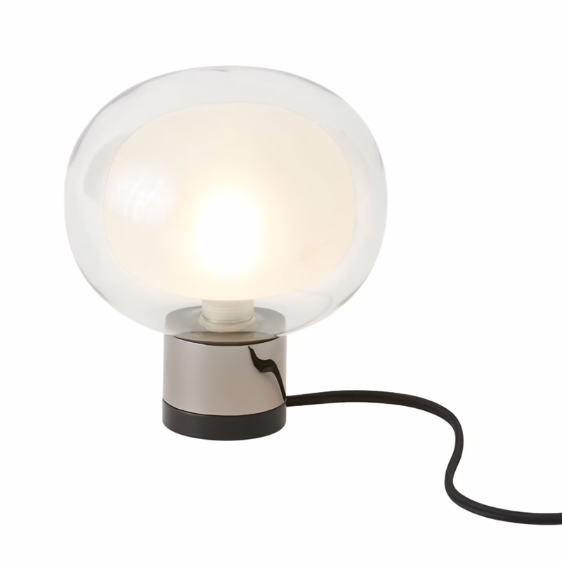 50s-inspired collection of elegant and sophisticated lamps, designed as distinctive details to enrich any interior. A double-sided luminous sphere in borosilicate glass defines the character of the collection, available in multiple compositions. The metal structure, coated with epoxy powder, is available in the standard finishes of black with brushed brass or black chrome details, combined respectively with transparent or smoked glass. A new refined option now joins the collection: a brushed titanium structure with bronze details, paired with champagne-colored glass, for a warmer and more sophisticated look. The collection offers a wide range of solutions for any setting: chandeliers (available in various models), table lamps, bedside versions (more compact), floor and wall lamps (the latter in three versions for single or modular, custom-made installations). The chandeliers can be freely customized by combining the various elements to create unique and tailor-made configurations for every space. All models are now also available with integrated LED sources, ensuring optimal light performance and energy efficiency while preserving the purity of the design. A balance of richness and restraint, all encapsulated in a single design element.