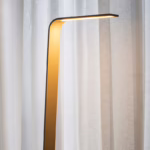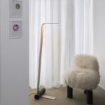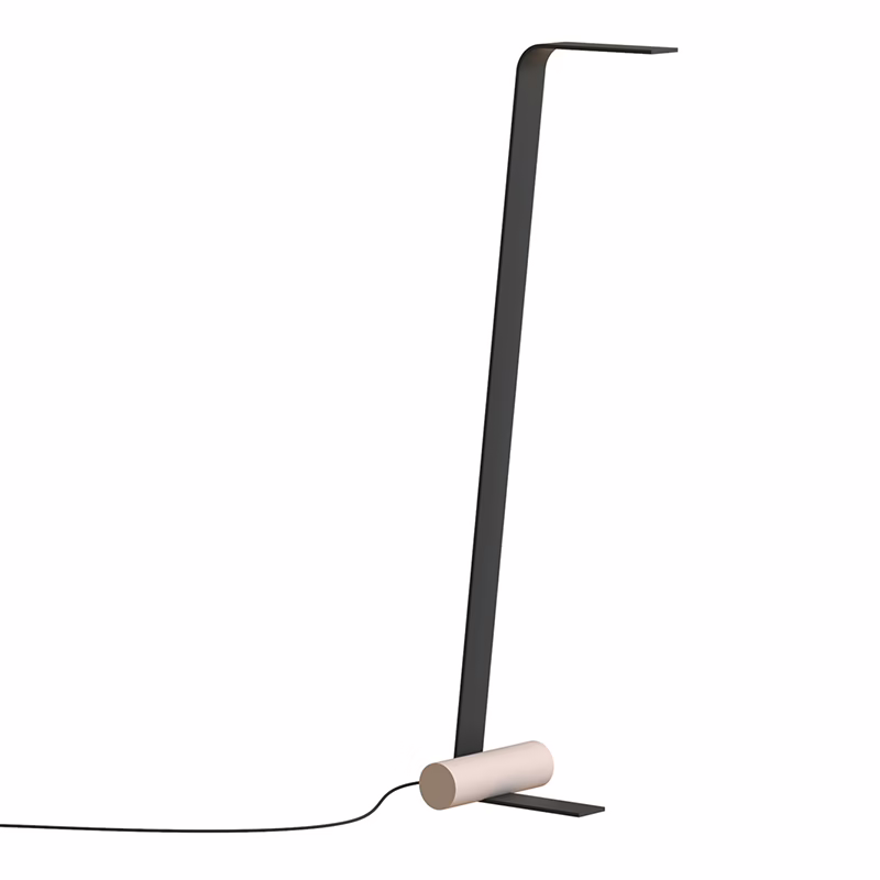 The Nastro collection of suspension, wall, floor and table lamps designed by Studiopepe sees an epoxy powder coated aluminum band structure accompanied by a cylindric weight that counterbalances its flexuosity, in a refined visual balance. The light source consists of a dimmable LED strip; the cylinders are available in epoxy powder coated metal, in wood, in brushed brass and in raw concrete.