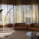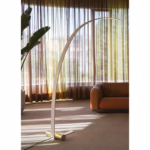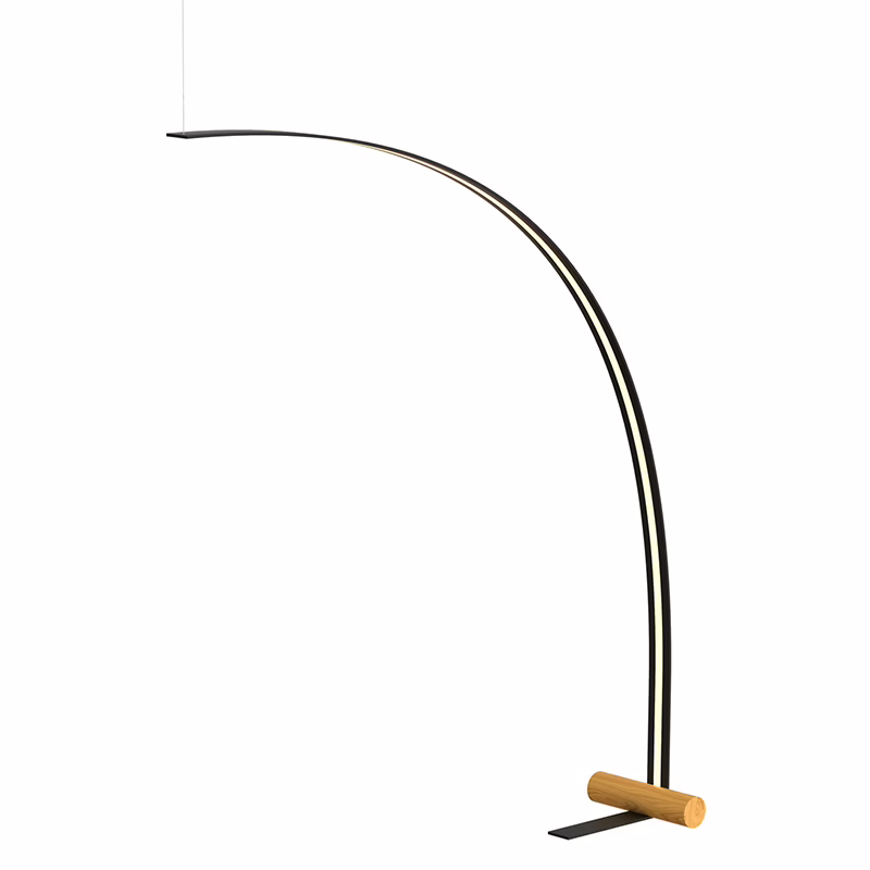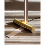 The Nastro collection of suspension, wall, floor and table lamps designed by Studiopepe sees an epoxy powder coated aluminum band structure accompanied by a cylindric weight that counterbalances its flexuosity, in a refined visual balance. The light source consists of a dimmable LED strip; the cylinders are available in epoxy powder coated metal, in wood, in brushed brass and in raw concrete.