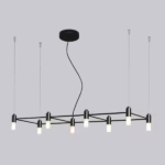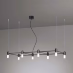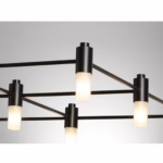 Modular suspension made of welded and powder coated steel pipes. The possible configurations are numerous and create a system of bright grids.