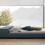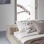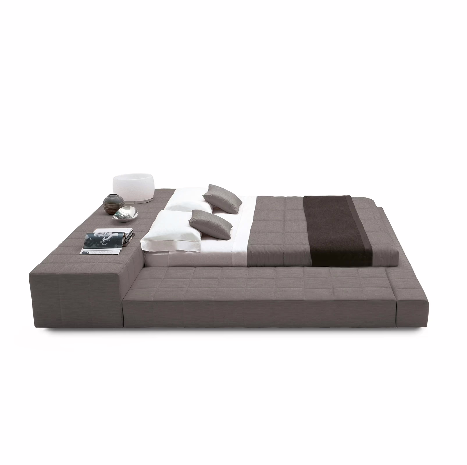 The modern bed reaches its maximum expression in the version with the side unit, thanks to which a real oasis of relaxation is obtained. Numerous versions are available in terms of the sizes and configuration of headboard and bed frame, in order to offer the utmost in personalisation. The sleeping area can be completed, finally, with poufs and a bench coordinated with the bed.