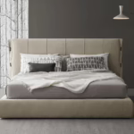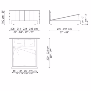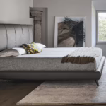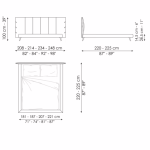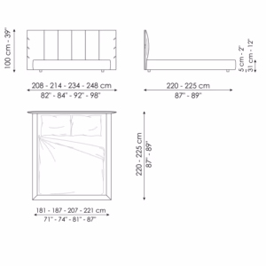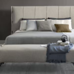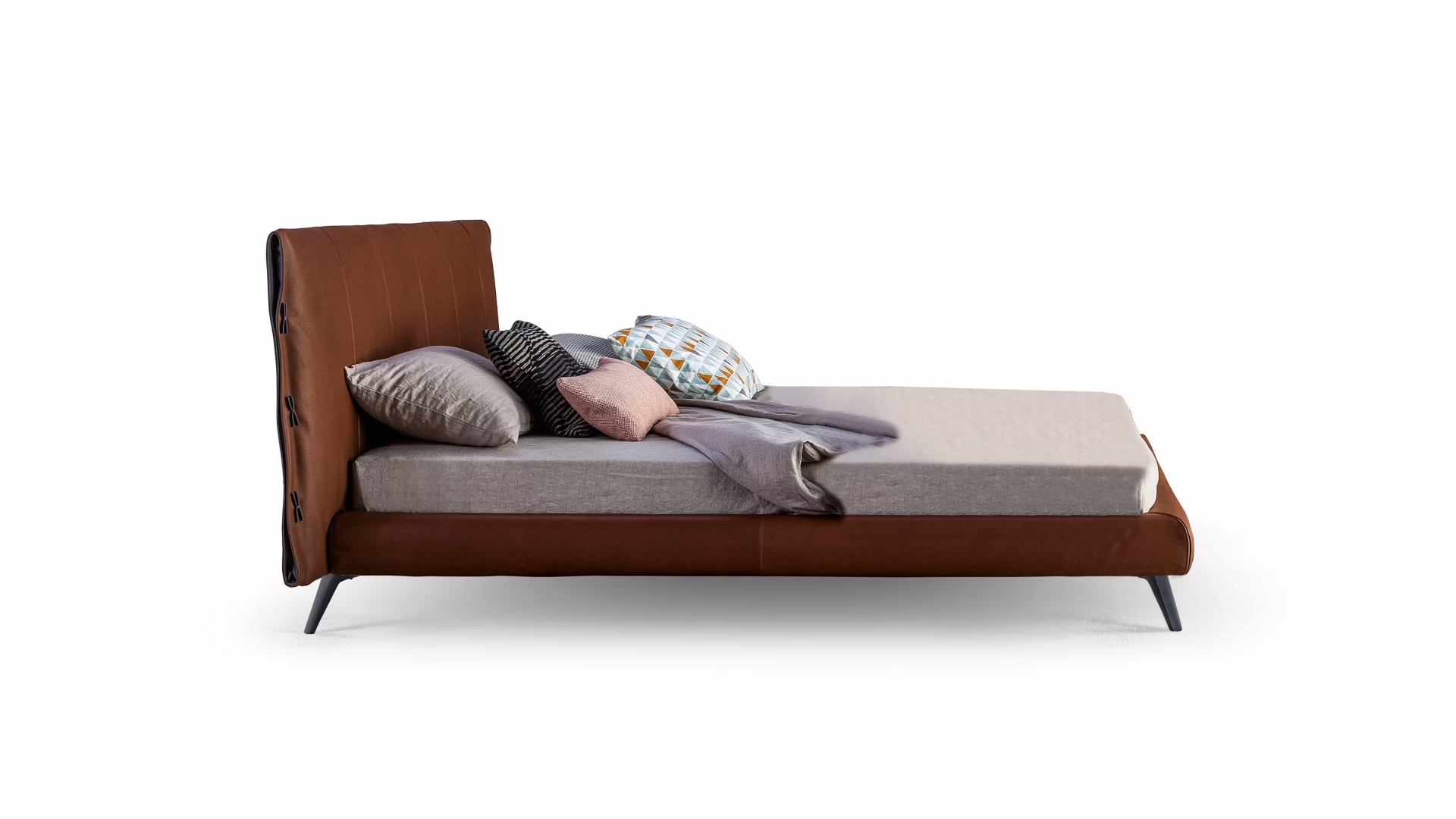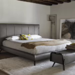 Available with completely removable cover in fabric, leather or eco-leather, Cuff is produced in various versions: with higher headboard (Cuff hi), with thicker bed frame, low feet in painted wood and low (Cuff plus) or high (Cuff hi plus) headboard. In the versions with storage (Cuff open and Cuff hi open), valuable additional space is available for storing covers, cushions and everything necessary for the bedroom. The Cuff easy open and Cuff hi easy open versions are furnished with a convenient storage space and also a double-action mechanism that allows the bed surface to be completely raised to facilitate making and cleaning the bed.