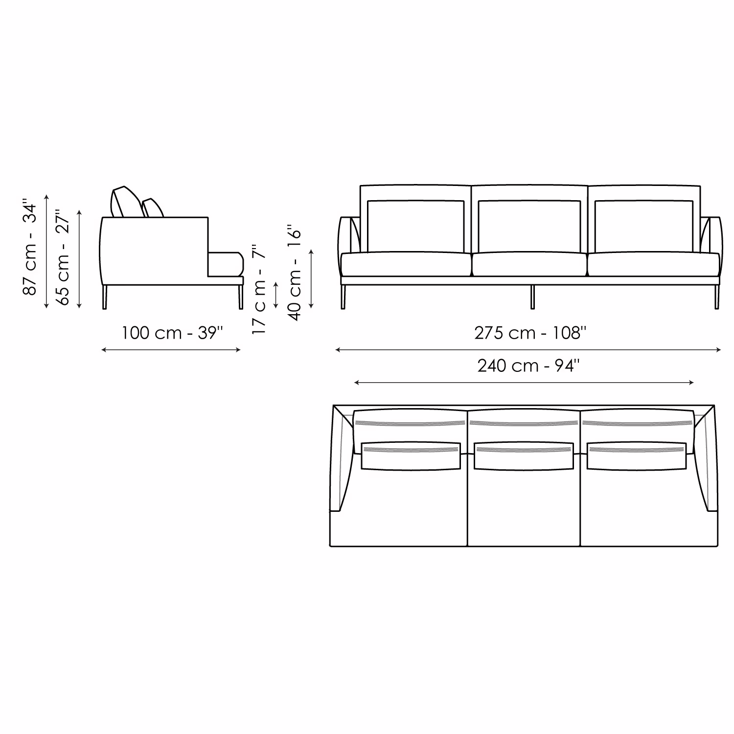 The Paraiso classic designer sofa with removable upholstery in fabric or leather, is available in numerous versions: in addition to the linear sofa, it is indeed possible to create solutions with a chaise longue or corners, or combining comfortable poufs, fully satisfying different tastes and needs for comfort. Particular care has also been used in the internal parts of the sofa: the feet can be in painted metal or upholstered in Capri leather.