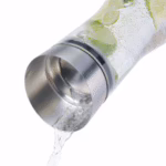 The Aldoa carafe is a stylish and practical way to serve water at the table. The water can be poured into the glass without removing the lid.