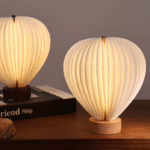 When opened, its sculptural silhouette echoes the gentle presence of a hot air balloon — floating, calm, and softly illuminated. Portable, dimmable, and beautifully balanced on a solid wooden base, Aeris Light is designed to move easily through the home, offering warm, atmospheric light wherever it’s placed.
