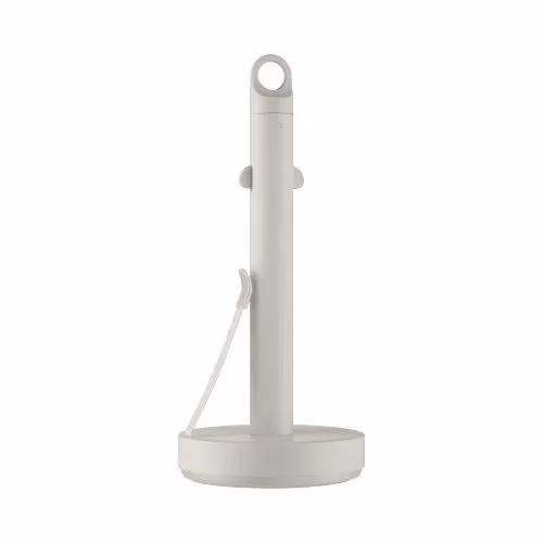 The paper roll is held centrally by two springs on the rod of the holder. This allows the paper to be pulled off with just one hand without the kitchen roll holder tipping over. A stainless steel arm, which is covered with plastic at the upper end, ensures that the paper does not tear.