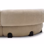 Simposio moves beyond the traditional sofa through its interplay of rounded and linear elements. Every detail has been reconsidered: the foot structure transcends its formal function to become a distinctive design element, specifically crafted to evoke the sensuality of a pressure point on fabric.