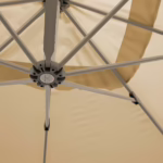 The Azur parasol combines aesthetics with practicality, enhancing any outdoor space. Its spacious square canopy and innovative side leg provide optimal shade without the hindrance of a centre pole. The adjustable canopy can be positioned in multiple ways, ensuring you can enjoy optimal shade throughout the day, no matter the sun’s angle, while the lightweight yet durable aluminium frame ensures longevity. A protective cover is included, and the user-friendly telescopic handle allows for effortless use, enhancing your outdoor experience.