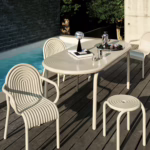 Functionality was at the forefront of the design process. The Groove Obround Table is part of a cohesive ecosystem that includes stacking chairs and stools, allowing you to maximize your outdoor space when not in use.