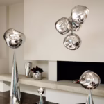 What defines the Melt Fat is its transformative nature. When the light is switched off, the orb presents a perfectly smooth, solid mirror finish—acting as a sculptural piece that reflects the surrounding room. Once illuminated, the surface becomes translucent, revealing a mesmerizing, “hot-blown” internal world that evokes the depth of a melting glacier or molten glass.